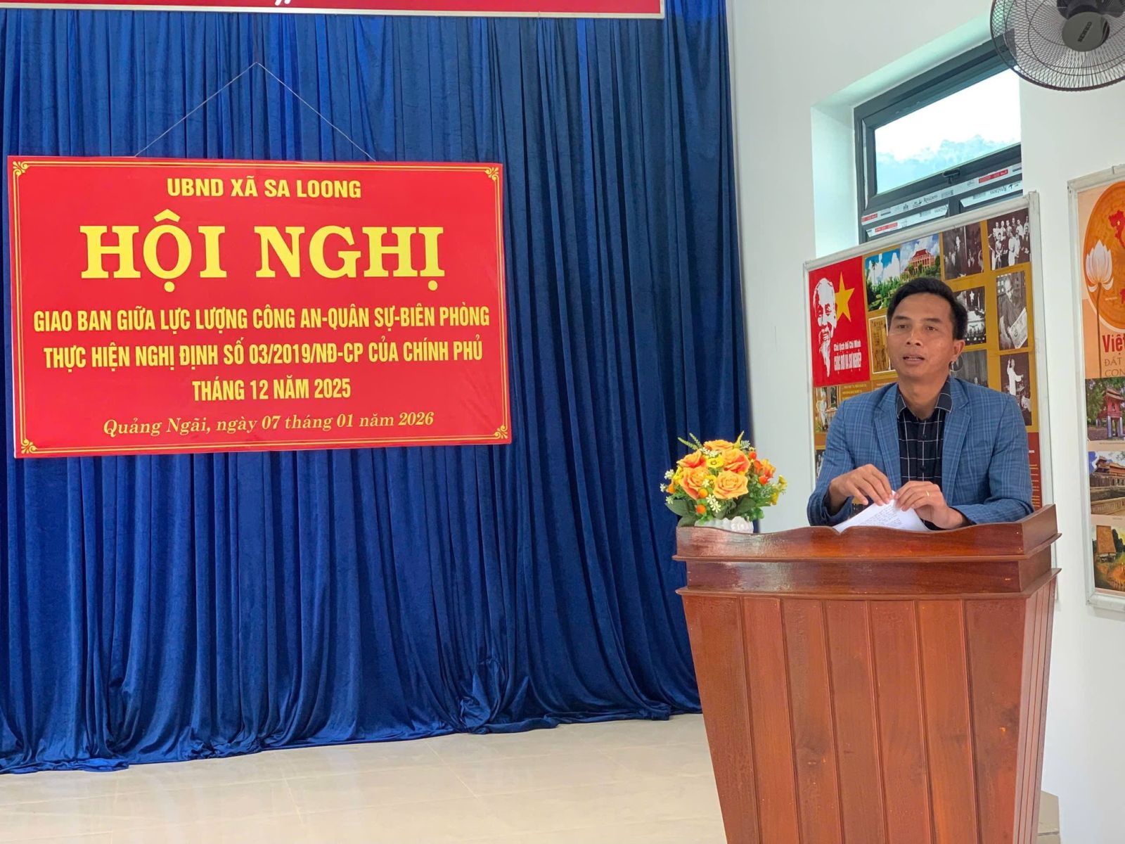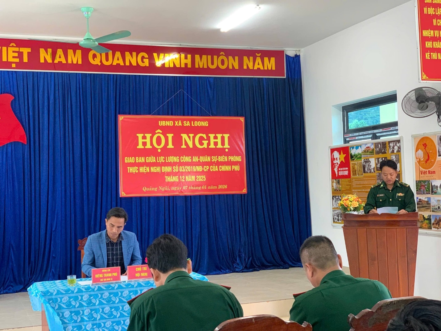 Ngày 07/01/2026 Công an xã Sa Loong phối hợp cùng Đồn Biên phòng, Công ty 732, Ban chỉ huy Quân sự xã Sa Loong tổ chức Hội nghị giao ban 3 lực lượng phối hợp thực hiện Nghị định số 03/2019/NĐ-CP của Chính phủ về công tác phối hợp giữa lực lượng Công an, Quân sự và Đồn Biên Phòng trong bảo vệ an ninh quốc gia, giữ gìn trật tự an toàn xã hội ở cơ sở tháng 12/2025.Đồng chí Xiêng Thanh Phú, Phó Bí thư Đảng ủy, Chủ tịch UBND xã dự và chỉ đạo hội nghị.