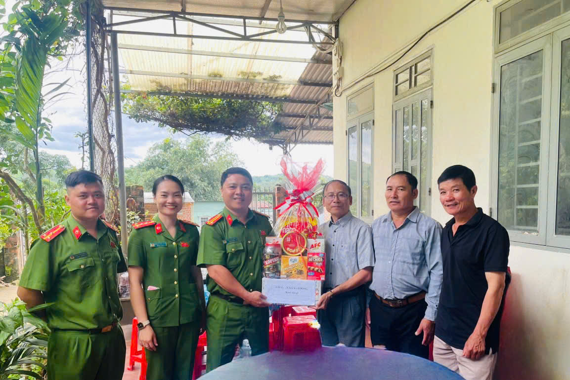 Đồng chí Trung tá Hiêng Lăng Tuấn – Phó Trưởng Công an xã tặng quà